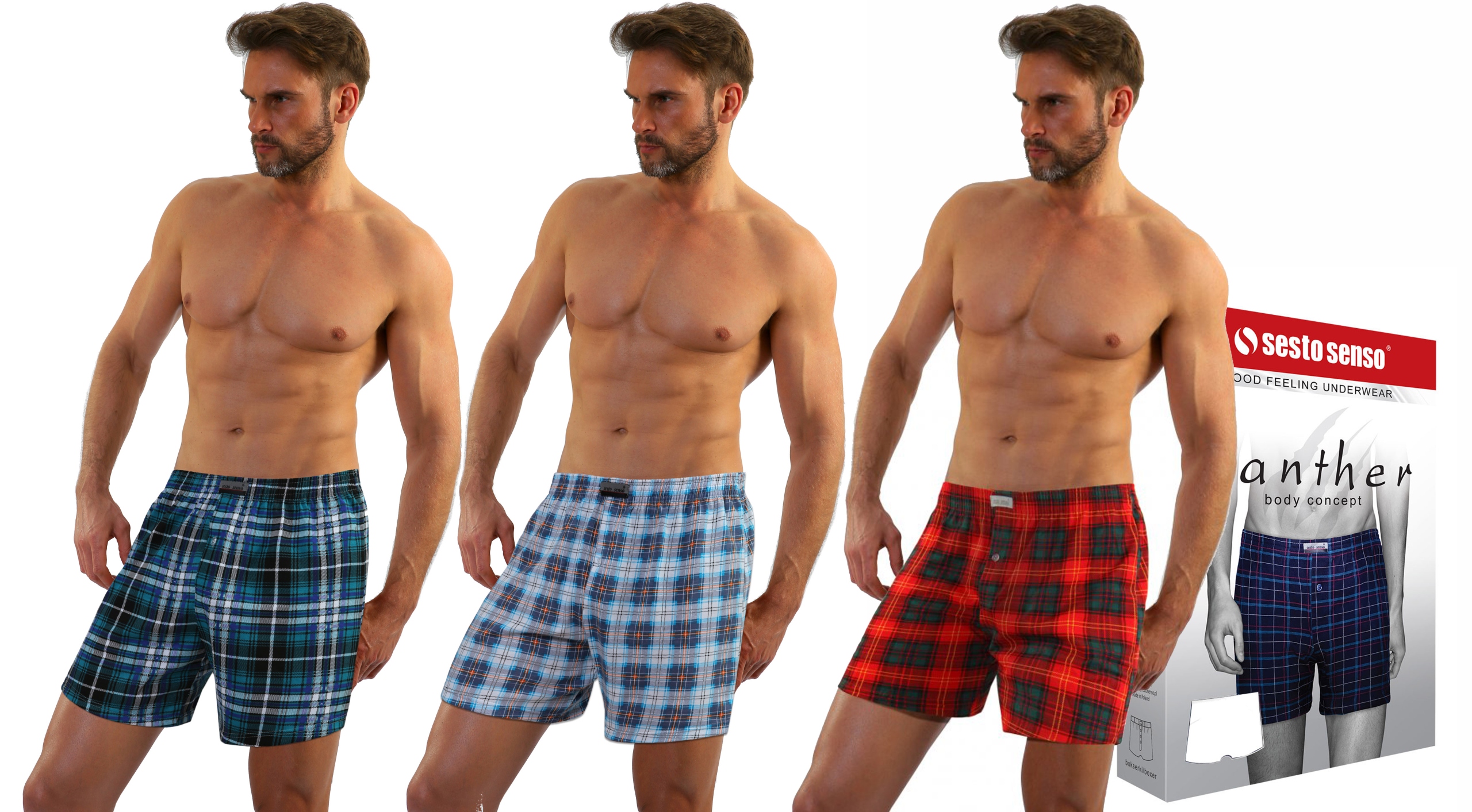 3 x Luźne BOKSERKI męskie polskiej firmy SESTO SENSO Panther