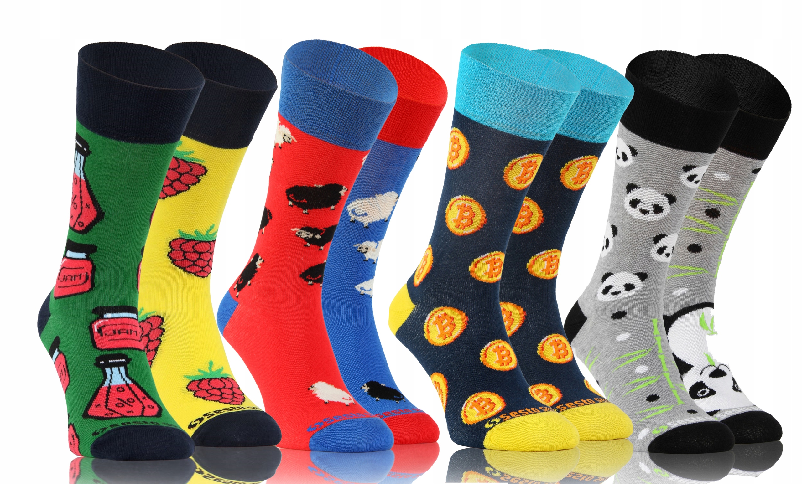 Wesołe skarpety w rożnych kolorach i z świetnymi kolorowymi motywami